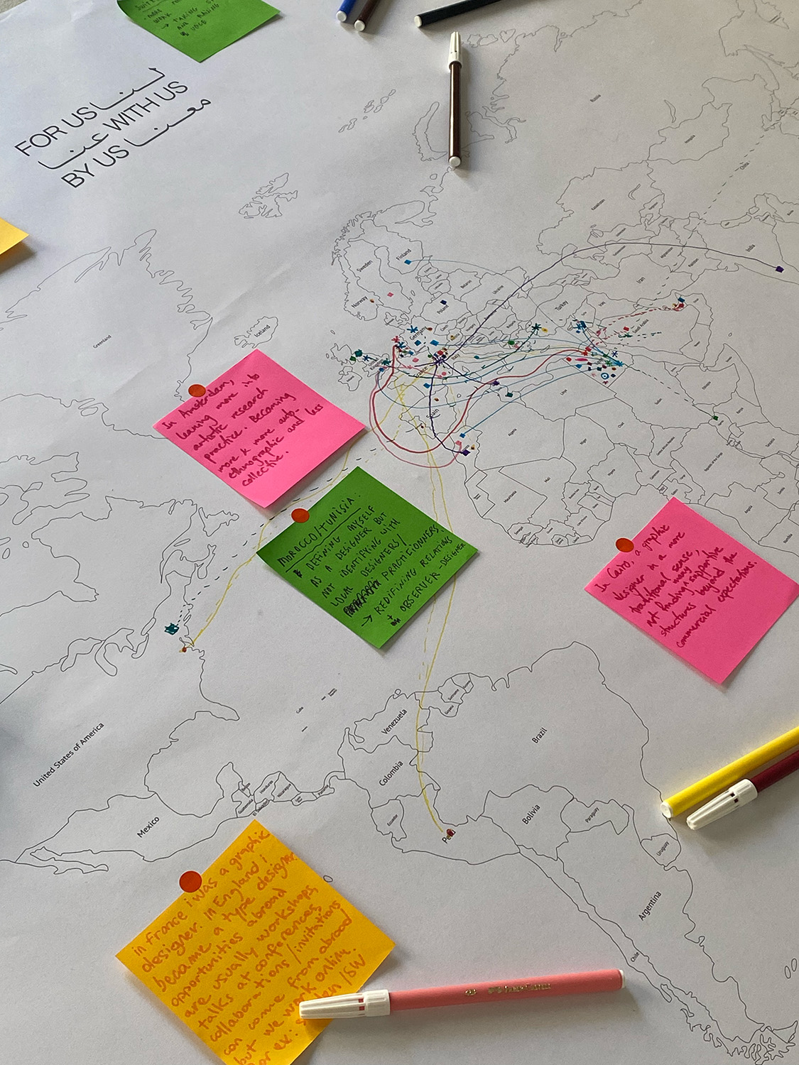 For Us, With Us, By Us—لنا، عنّا، معنا is a bilingual series of conversations centring the voices of SWANA (South West Asia and North Africa) designers, practitioners, educators, and researchers that explore themes of transnational identities beyond the western canon. Two online roundtable events examine the topics of Ontology and Narrative, aiming to promote an active exchange between Arab cultural workers and their Swiss-based counterparts: